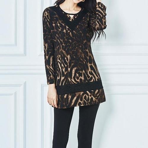 [셀러허브_여성트랜드패션]까르죠아 레이스 호피 미시티셔츠 빅사이즈 스판