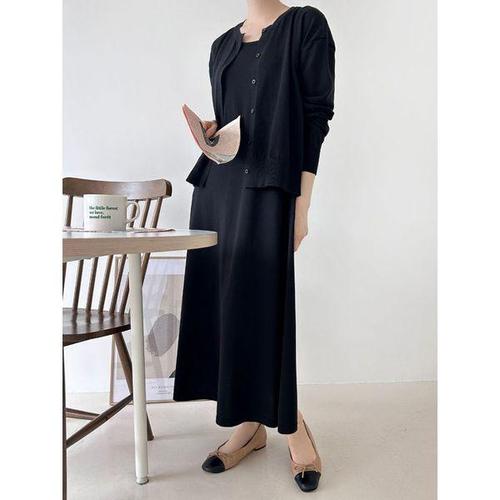 [다잇템][다잇템] 여자 환절기 슬림라인 롱원피스 카디건 스트랩 세트_18666733_588872