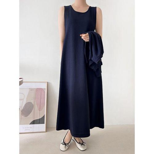 [샵앤]여성 라운드 민소매 원피스 가디건 세트 ARA-WSET-4858-네이비