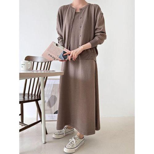 [샵앤]여성 라운드 민소매 원피스 가디건 세트 ARA-WSET-4858-모카