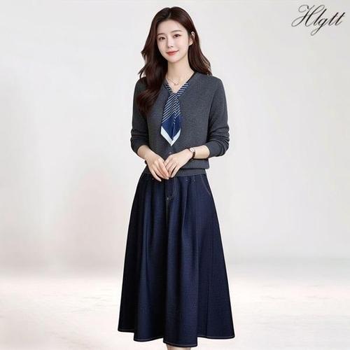 [다잇템][다잇템] 여성용 카디건 세트 클래식 미니원피스 페미닌 투피스_24177255_588872