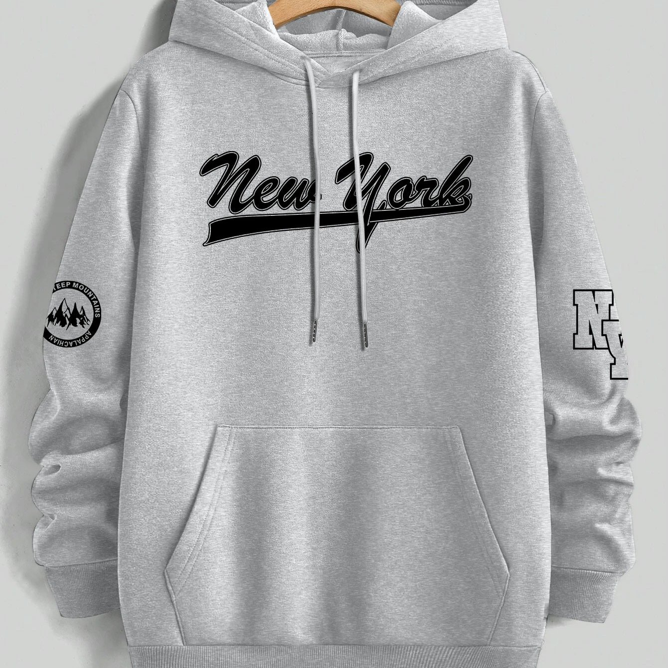 TEMU 남성용 캐주얼 긴팔 후드티, "뉴욕" 프린트 - 가벼운 회색, 야외 활동에 적합, 가을과 겨울에 완벽, 야외 캐주얼 의류 | 그래픽 후드티 | 편안한 핏 후드티
