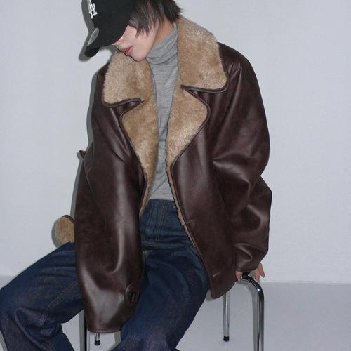 [하프클럽/]여자 남자 박시 퍼안감 카라 가오리 무스탕 가죽 자켓