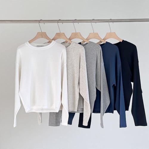[옷자락]여자 가오리핏 라운드넥 간절기 모달 긴팔 티셔츠
