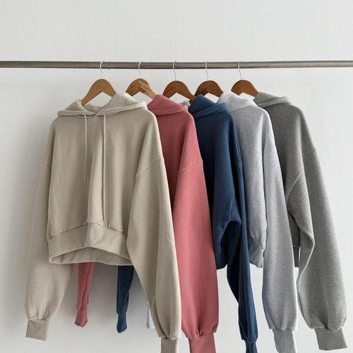 [옷자락] 여성 양기모 가오리핏 퍼프 크롭 후드 티셔츠