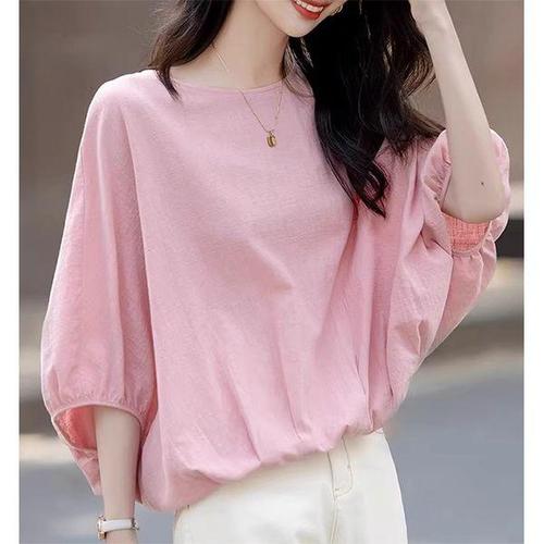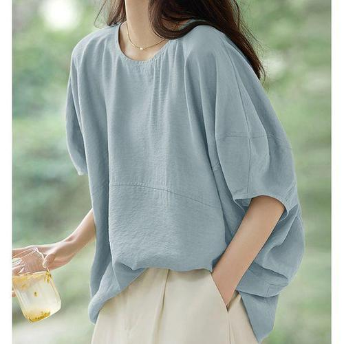 F007312_지지미린넨 가오리핏 블라우스 반팔티