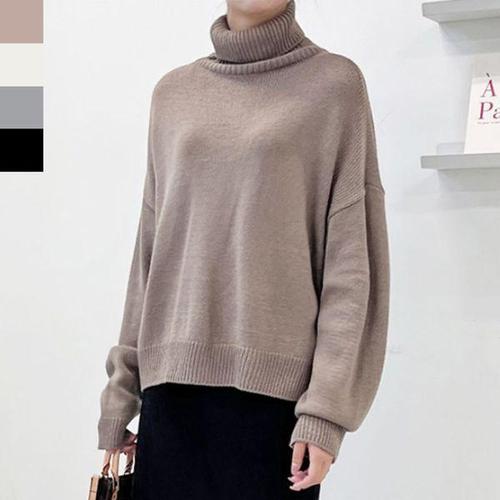 [에이치플러스몰]여자 가오리핏 목폴라 니트 긴팔 티셔츠 1P 겨울옷