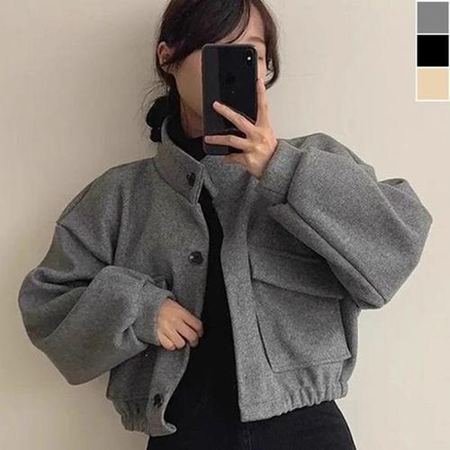 [에이치플러스몰]여성 가오리핏 베이직 무지 포켓 숏 크롭 자켓 코트