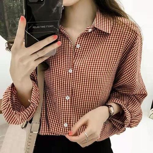 믹스컬러그리드패턴 레이디스 가오리핏 블라우스 셔츠 컴포트 WFJIX1U