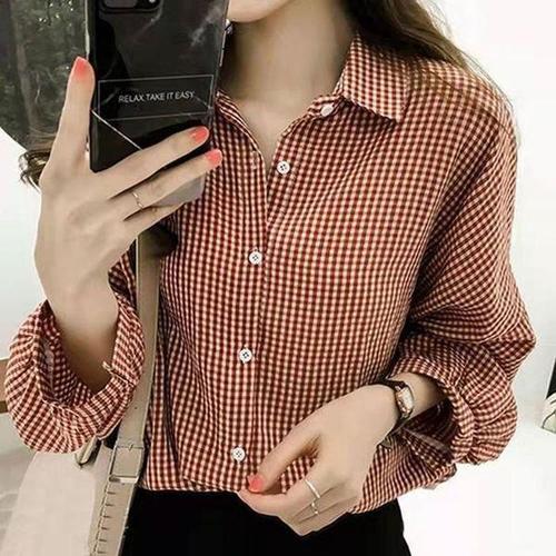 [셀러허브_여성트랜드패션]여성 가오리핏 체크 셔츠 블라우스 X 2컬러