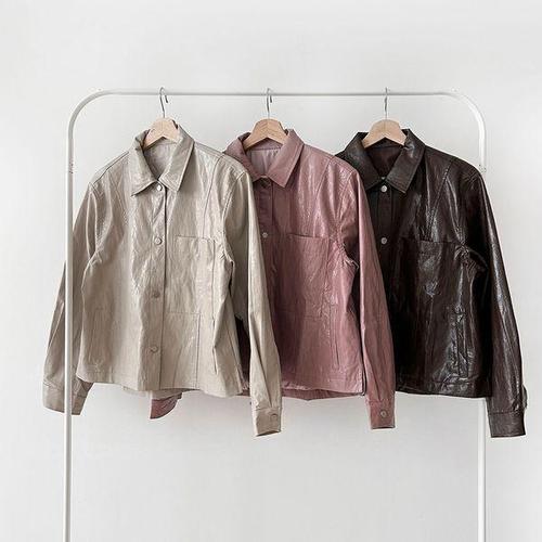 [다잇템]여자 레더 3컬러 가을 박스 슬림핏 가죽 자켓