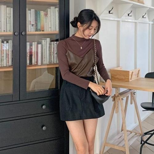 [다잇템][다잇템] 여자 레더뷔스티에 가을레이어드 목티 캐미 브이넥 세트_18930486_588872