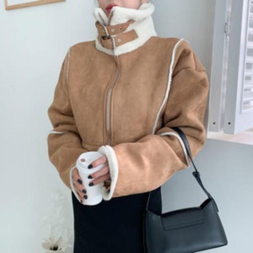 [기타브랜드]네쥬 여성 가을 겨울 크롭 스웨이드 카라 데일리 무스탕 숏 자켓