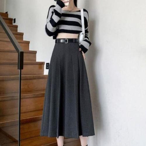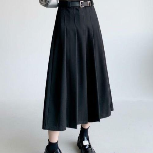 [신상오픈런]여성용 가을 겨울 일상 플리츠 하이웨이스트 롱 스커트