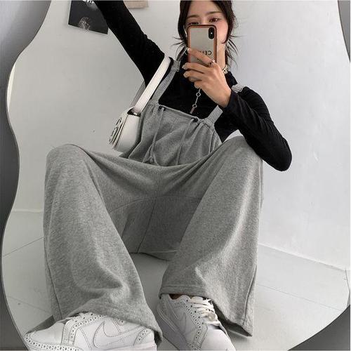 [신상오픈런]여성 라벨 두 포켓 멜빵 일자 와이드핏 가을 점프수트