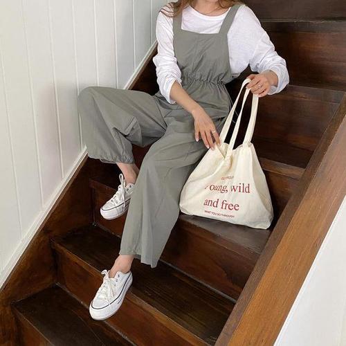 [문에이블]문에이블 여자 여성 봄 가을 간절기 바스락 나일론 허리스트링 멜빵 점프수트