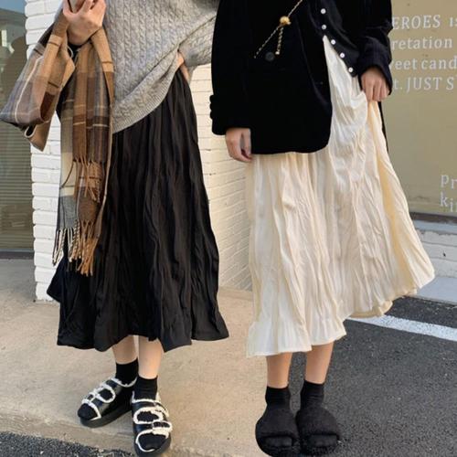 [옷자락]여자 봄 가을 간절기 내추럴 링클 롱스커트