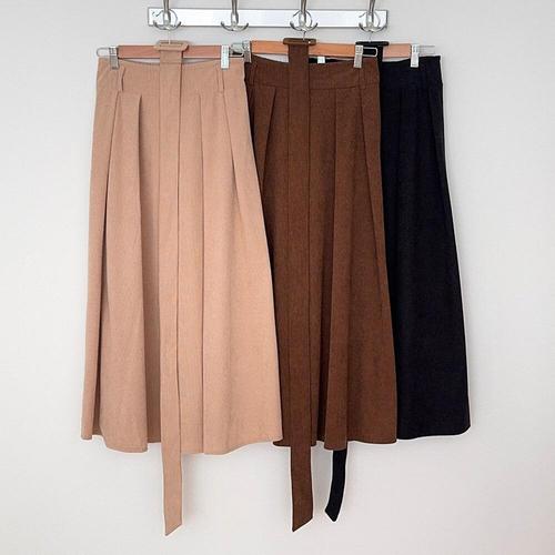 [드리다]봄 가을 클래식 플리츠 미디 롱 주름 벨트 셋트 치마 스커트 캐주얼 모임 출근