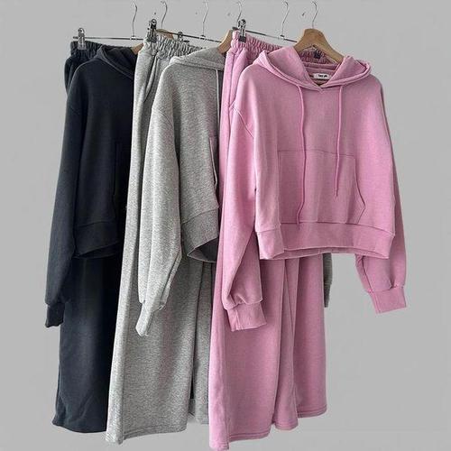 [신상오픈런]여성 크롭 후드티와 와이드팬츠 가을 트레이닝 세트