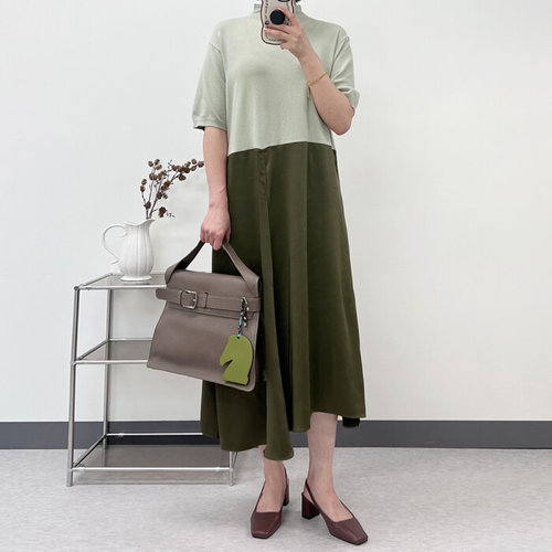 미즈큐즈 / 단독상품 새틴 반목 언발 롱 니트 원피스 봄 가을