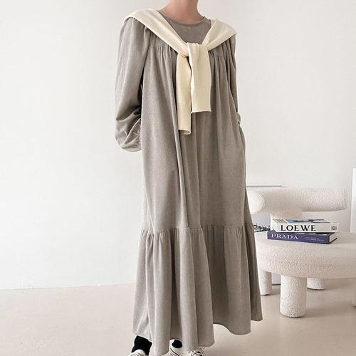 [미라클세븐]여성 가을 큰 사이즈 셔링 퍼프 골덴 롱드레스