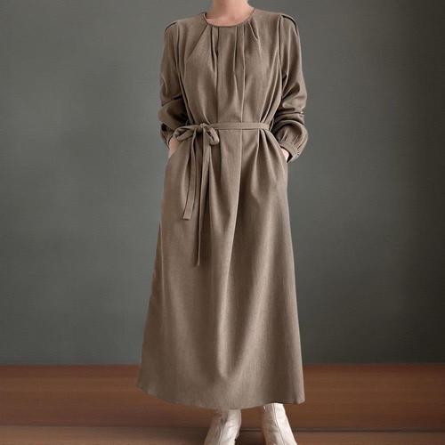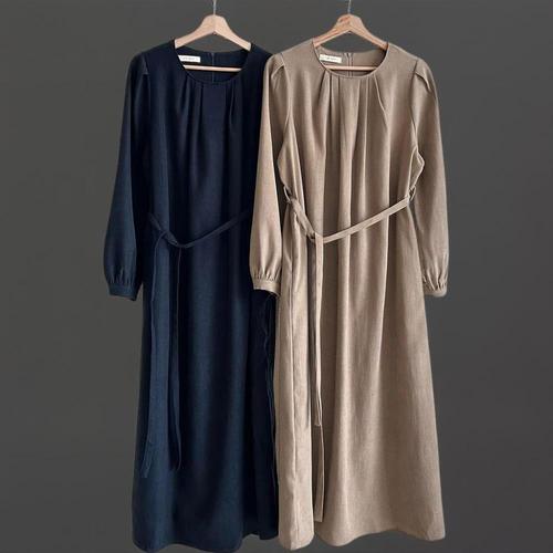 TKX 원피스 여성 긴팔 A라인 레트로 가을 겨울 복고풍 리본타이 롱원피스 KD97