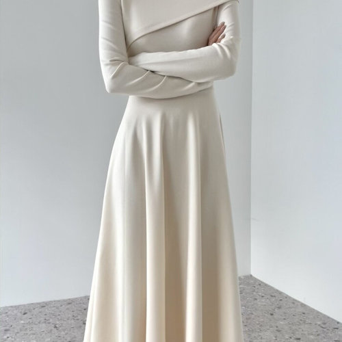 여성 고급 긴팔 원피스 하객룩 정장원피스 간절기 가을 겨울 부드러운 롱원피스 중년 엄마옷