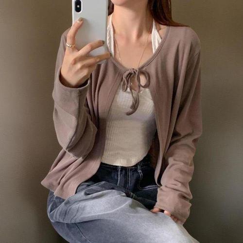 [신상오픈런]여성 빅사이즈 가을 간절기 리본 매듭 오픈 가디건