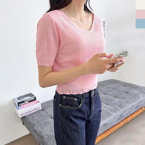 [신상오픈런]여성 가을 크롭 긴팔티 단가라 아일렛 컷팅 스판 티셔츠