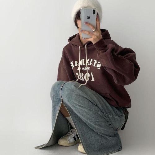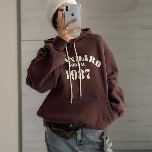 [신상오픈런]여성 기모 후드 티셔츠 캥거루 포켓 대형 레터링 가을 의류