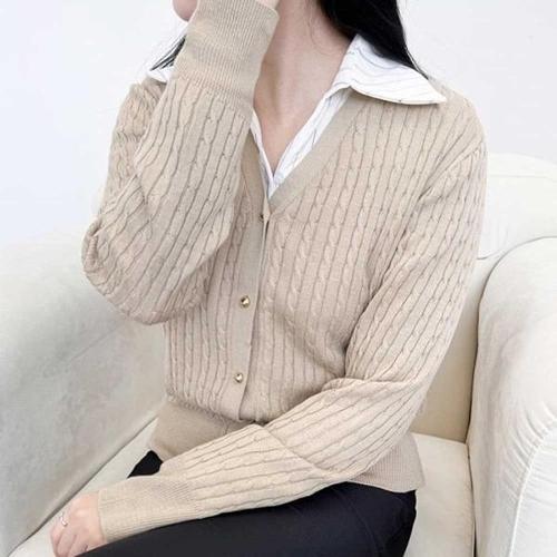 [엄지척]여성 꽈배기 골드버튼 니트스웨터가디건 봄가을아우터_19792304_667501