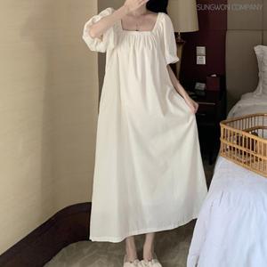 이너퀸 프리수 여성 밍크 극세사 리본 레이스 화이트 스퀘어넥 공주 수면 잠옷 원피스 데이수면원피스