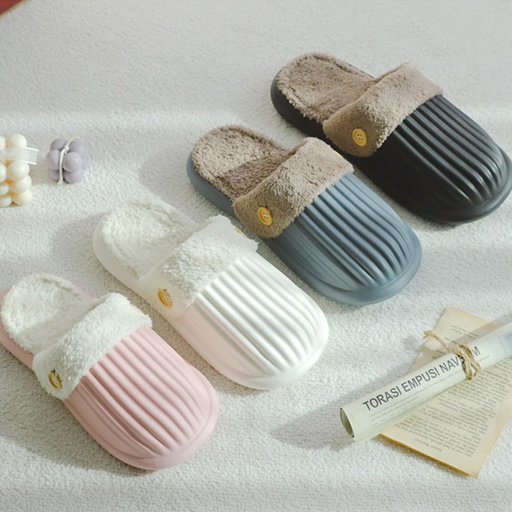 남녀 EVA 단추 커플실내화 양털 털슬리퍼 부모님 산후조리 출산용 답례품 선물용 침실