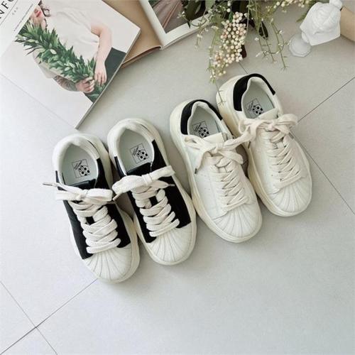 여성 대학생 어글리슈즈 배색컬러 가죽 운동화