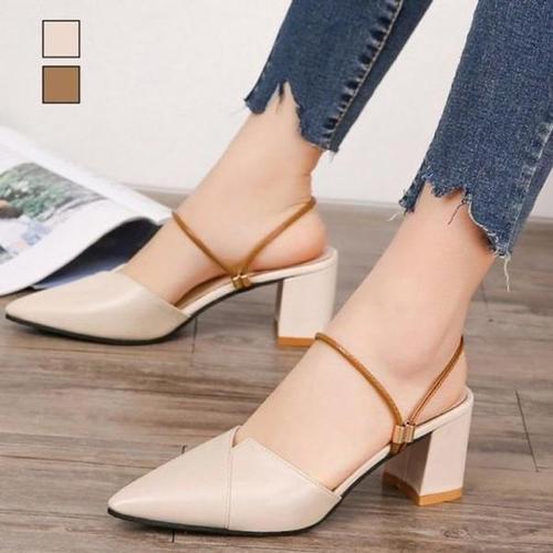 여성 빈티지 가죽 슬링백 청키힐 4cm 봄여행 구두