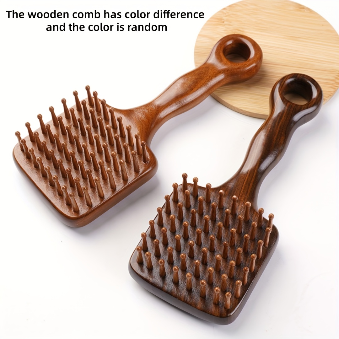 TEMU 산달우 머리 마사지 빗, 편안한 엉킴 방지 나무 빗, 다기능 두피 빗, 긴 손잡이 헤어 스타일링 빗.