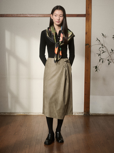 |KCKA82|스메우 포멀 스프링 치마 가죽 랩 정장룩 여성 튤립