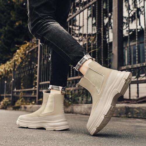 [옷자락] 남자 심플 퍼 레더 아웃솔 스티치 앵클 부츠 워커
