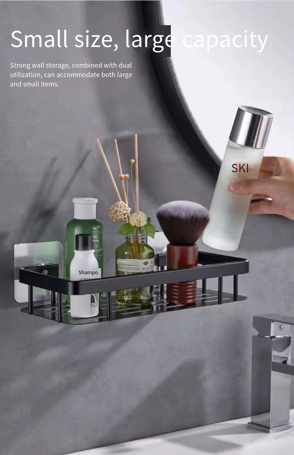1개 화장실 무타공 흡착식 수납 선반 정리용 세면대 벽걸이형 주방 욕실 수납 선반