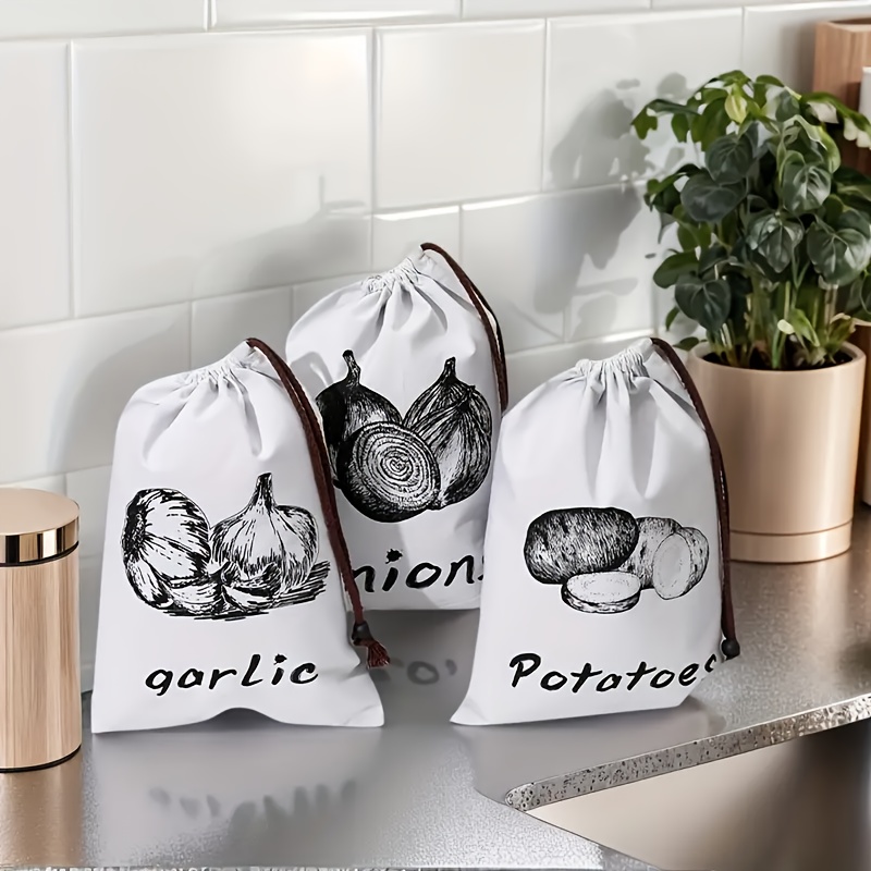 TEMU 3pcs 재사용 가능한 감자 및 양파 보관 가방 - 주방 신선도 보호, 드로스트링 클로저, 혼합 컬러 디자인, 감자, 양파 및 기타 채소 보관에 이상적, 채소 보관 가방