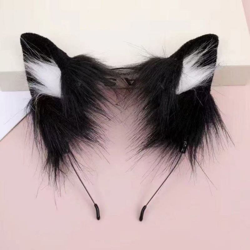 TEMU 여성용 애니메이션 늑대 여우 & 고양이 귀 머리띠 - 귀여운 플러시 인조 모피, 블랙 & 푹신한 귀, 세탁 가능한 애니메이션 헤어밴드 (코스프레, 할로윈, 할로윈 코스튬용), 부드러운 질감, 코스프레 애호가