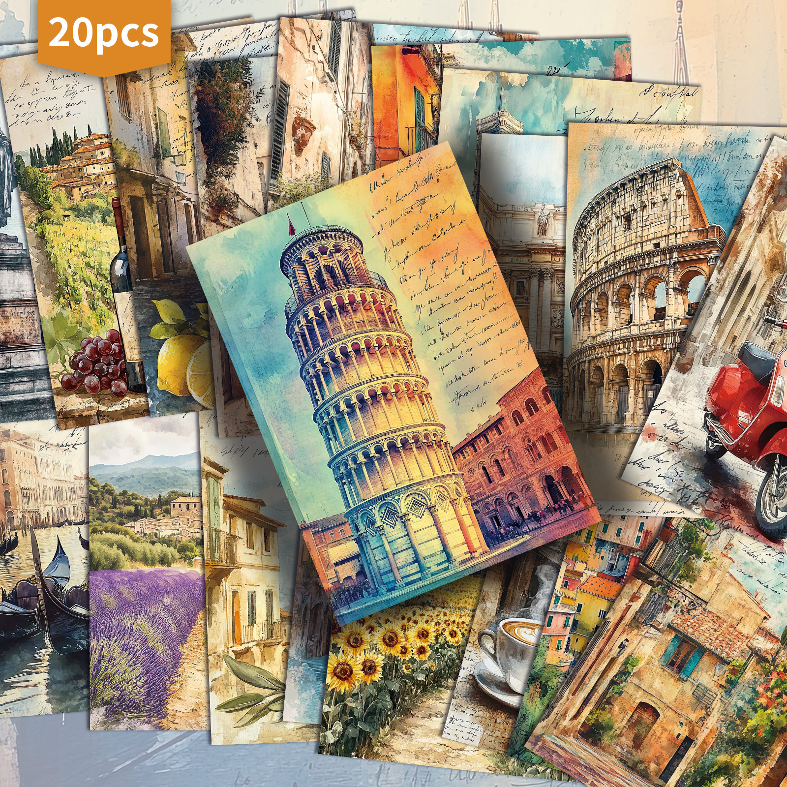 TEMU 20팩 이탈리아 테마 빈티지 이탈리아 여행 엽서 북렛 - 4x6 인치 레트로 이탈리아 랜드마크 (비스말타탑, 로마 콜로세움, 피렌체, 폼페이) - 스크랩북, 공예 및 이탈리아 문화 애호가를 위한 수집용 잡지 카드