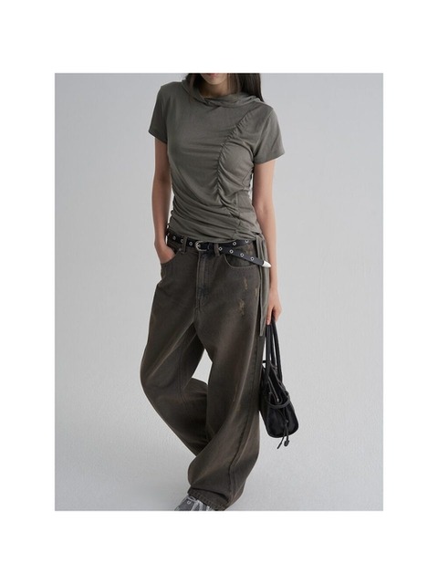 [에잇세컨즈] 셔링 반소매 후드 저지탑카키 (165842AYBH)