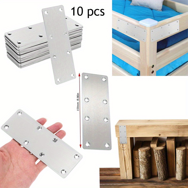 TEMU 10개 스테인리스 스틸 플랫 메ンディング 플레이트 - 목재 수리 및 가구 고정용 사전 천공된 구멍이 있는 헤비듀티 금속 브래킷, 실내외 사용 가능, 목공 도구