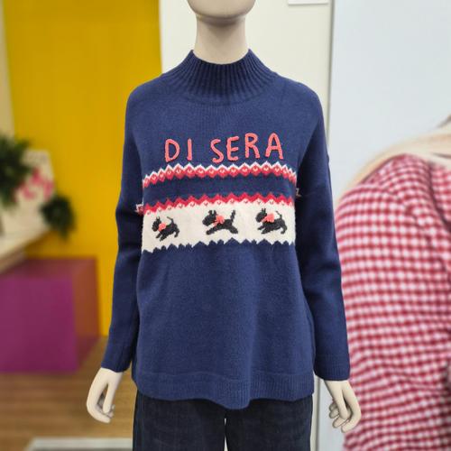 [신상오픈런]여성용 사랑스러운 강아지 자수 나그랑 라운드 가을 울 니트