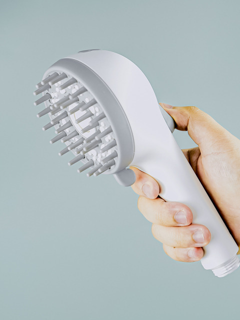 브러시 절수 샤워헤드(크롬) 샤워기에 브러시 부착 머리빗 강아지 목욕등