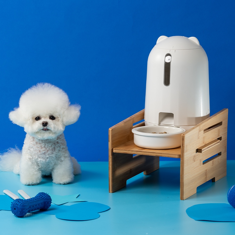 강아지 고양이 자동 급식기 도자기 밥그릇 3단원목 받침대 세트