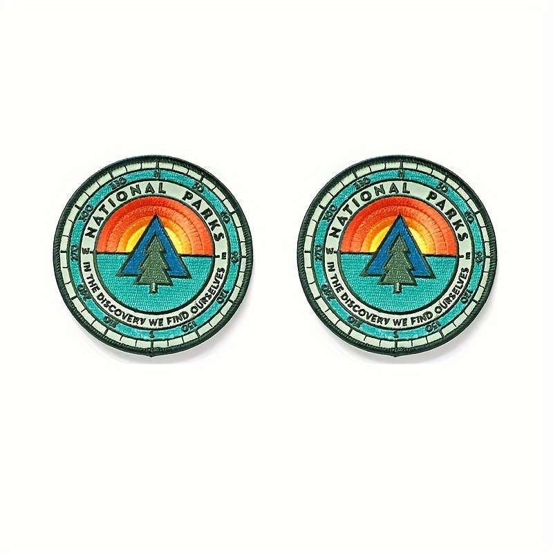 TEMU 국립공원 일출 자수 패치 2개, 혼합색, 다림질/봉제, 의류 및 액세서리 장식 배지