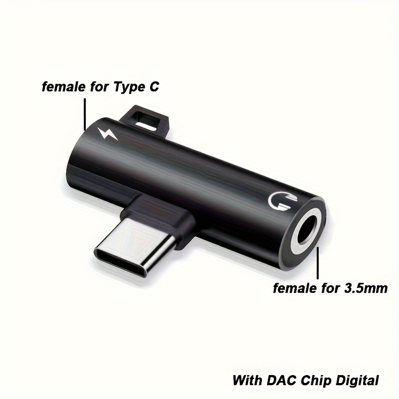 TEMU 미니 타입 C 이어폰 어댑터 타입-C에서 3.5mm 오디오 충전 케이블 이어폰 컨버터 충전 어댑터 블랙 잭 내장 DAC 칩 1279 디지털 디코딩 삼성, 구글, 모토, 샤오미 등