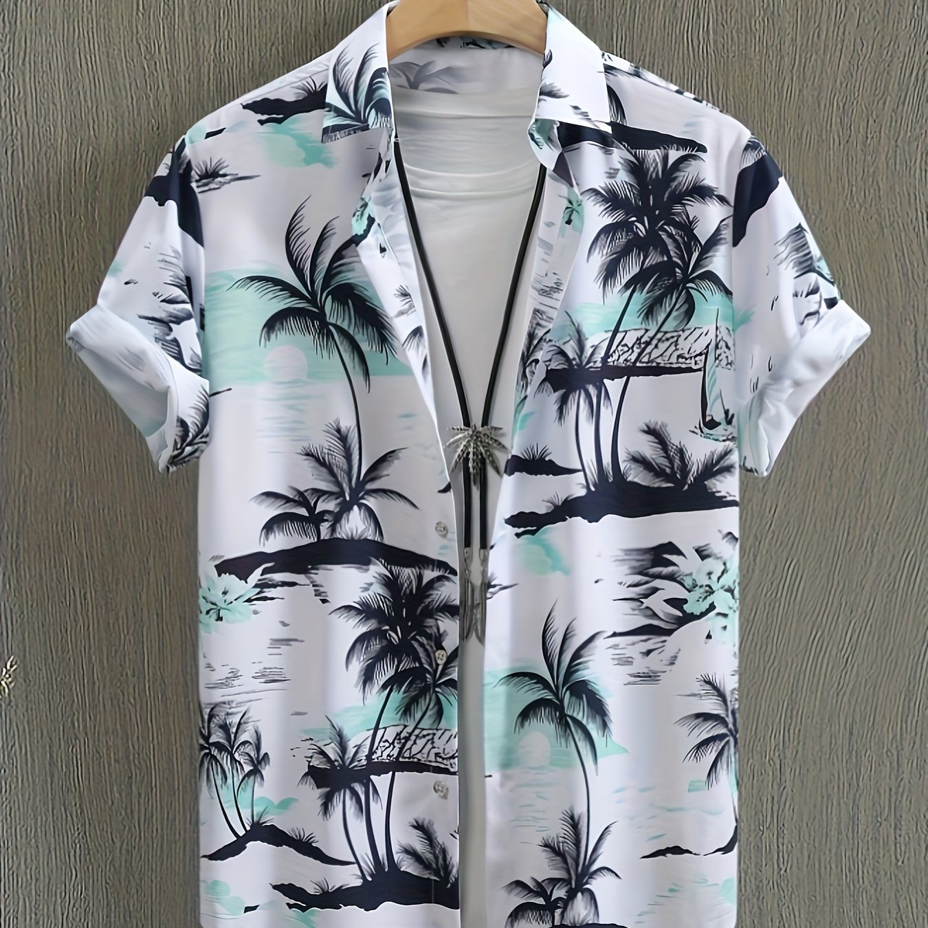 TEMU 남성 패션 하와이 스타일 반팔 셔츠, 코코넛 나무 패턴 전면 프린트 버튼업 라펠 셔츠 여름 리조트 휴가용